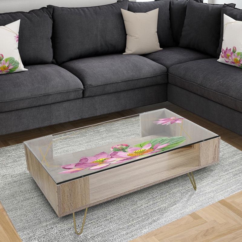 Accent your traditionally designed home with the ‘Efflorescent Gold Simple 12’ coffee table. The printed glass top provides a partial view of the roomy shelf underneath, so you can use the space to display an assortment of memorabilia. Metal hairpin legs finished in gold enhance both the looks and strength of this table.