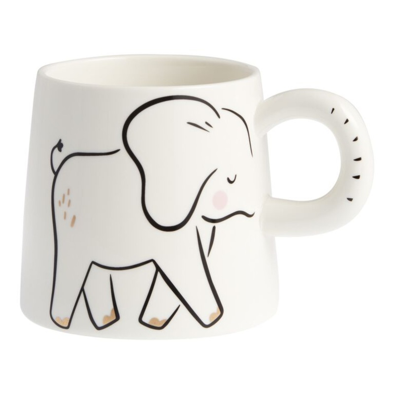 Our exclusive elephant mug features a finely crafted handle in the shape of the beloved creature’s curled trunk. The body of the mug has an elegant, tapered shape and features the elephant’s body and head highlighted with gold accents on a crisp white background. It’s the perfect gift for the animal lover in your life.
