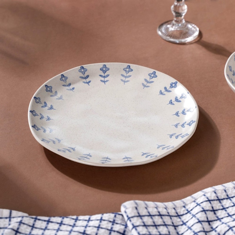 The dinner plate in white and blue has an intricate yet minimal floral design. The white backdrop of the dinner plate not only elevates the food being served in it but also gives the table setup a luxe look. Serve full meals on the white dinner plate or use it as a platter to serve starters. Pair the dinner plate with the bowls and appetizer plates from the collection to make a customized set.