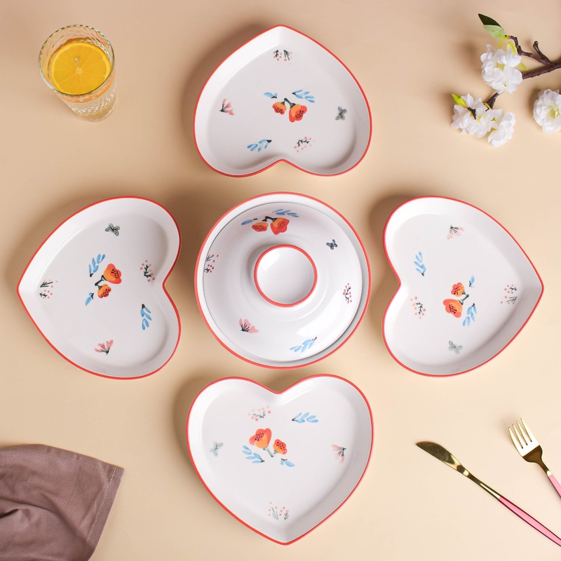 The spring-inspired ceramic set includes four heart plates as well as a pot with a lid making it ideal for small gatherings. Dim sums or pasta can be served on the floral print ceramicware. The plates can be used separately or in a creative way to serve snacks, fruits, and other items. The plates also offer a splash of colour to the table, making it appear more trendy and appealing. The lidded pot is ideal for keeping the food warm while serving.