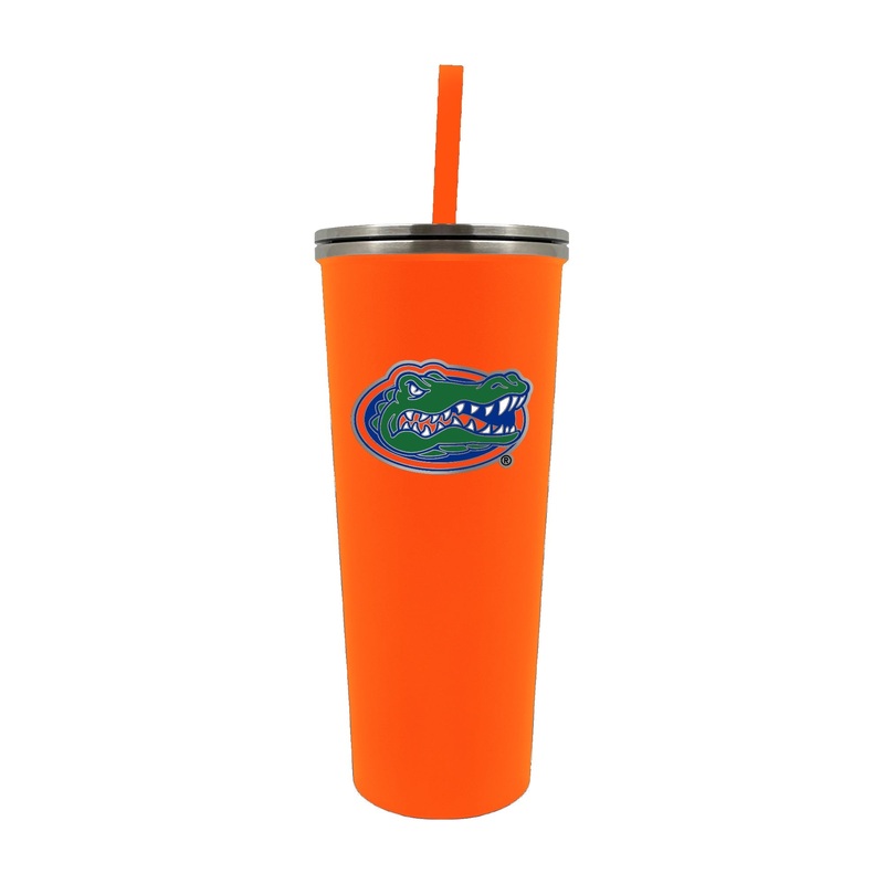 The 24 oz. SKINNY team colored tumbler is vacuum insulated and features a high quality 3-dimensional licensed metal team emblem. Includes a stainless steel push down lid and matching colored straw.