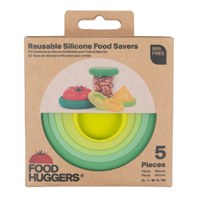 Preserve produce of any size with this set of food-grade silicone Food Huggers in your choice of colors. Simply place the open end of a fruit or veggie into the sleeve that fits it best and press down to “hug” it with an airtight seal. These reusable alternatives to disposable plastic wraps, baggies and foil can also seal opened jars or cans. Food Huggers invents stylish storage solutions to reduce waste in our homes.