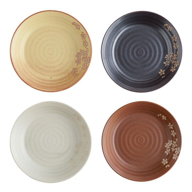 Set an elegant, tranquil table with our rustic salad plate inspired by traditional Japanese design. Made of stoneware and organically textured, this set includes dishes in four earthy colors, each adorned with a delicate cherry-blossom motif. Mix with your current place settings or match with other pieces from the collection for elevated entertaining and everyday dining.