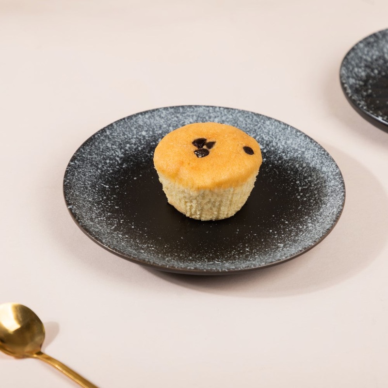 The ceramic dessert plate with a matte finish is a great way to serve the guests at a house party. The minimal appeal of the spray-painted white edges makes it suitable for all modern dinner set-ups. From desserts to starters to snacks, the black stone pottery dessert plate is great for serving a lot of side dishes.