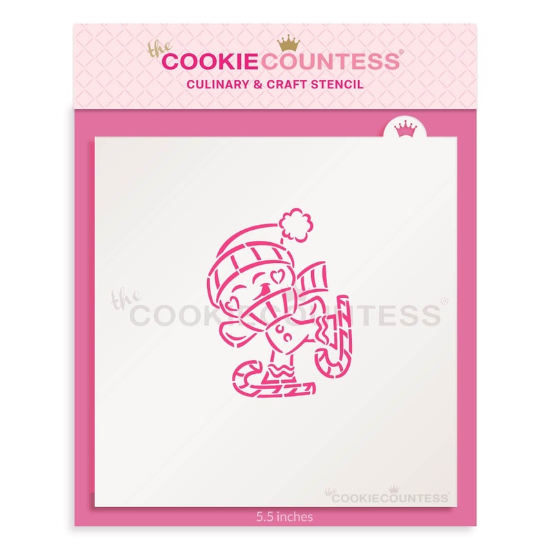 Gingerbread man Ice Skating stencil. Original art for The Cookie Countess by illustrator Krista Heij-Barber.Design size is 2.10″ x 2.75″