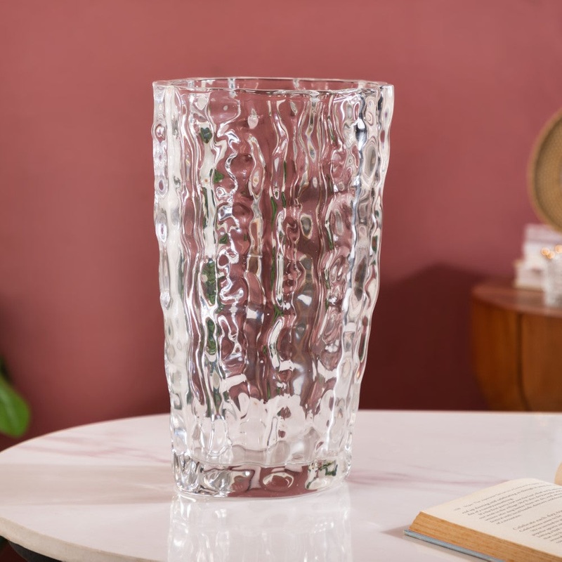 The stunning glass vase is the perfect addition to any home decor collection. The flower vase has been crafted with care from high-quality glass, that features a unique glacier ice texture to add depth and dimension to any arrangement. The texture of the glass creates a stunning interplay of light and shadow, making the crystal vase an ideal choice for displaying your favourite flowers, greenery, and decorative items like vase fillers. The tall glacier-textured vase has a versatile design that makes it easy to integrate into any interior decor. The oval textured glass vase will add elegance to your living room, bedroom, or office.