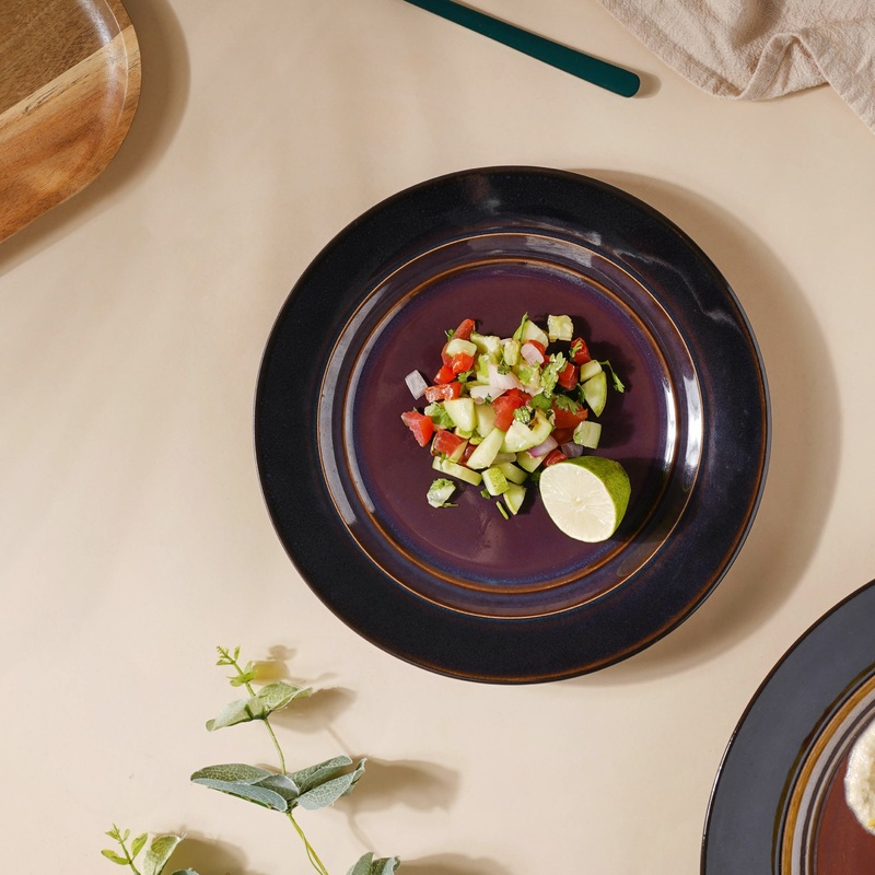 Any modern dinnerware collection will be accentuated with the addition of a glazed-ceramic snack plate. The brown and black plate is ideal for serving pasta, risotto, and other similar delicacies. The snack dish can also be used as a platter to offer munchies, chicken wings, nibbles, appetizers, snacks, or nibbles to guests during house parties or get-togethers.
