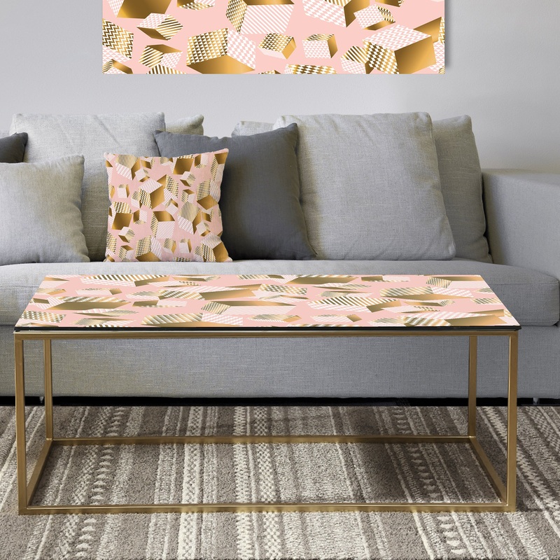 Infuse your living area with the fashionable flair of this sleek accent table by Designart. Owing to the vibrant and enduring quality of high-density Italian inks, this coffee table presents lasting visual allure with its stunning abstract-style print. This table showcases minimalist-themed charm with its goldtone sled-base construction.