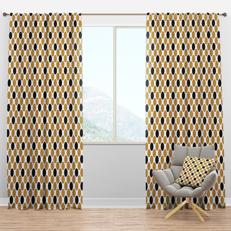 Dress your windows to match the mid-century modern vibe in your room with this ‘Golden Polka Dot’ curtain panel. This abstract design takes on a vivid look due to the high-density Italian inks, which resist fading to maintain the design. Each hand-sewn, light-filtering panel uses a traditional rod pocket header for simplified hanging.