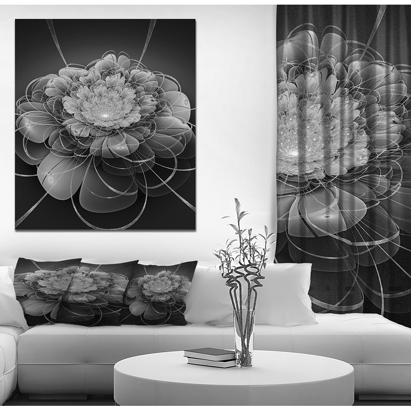 Gray Lotus Space Flower – Floral Contemporary Art on wrapped Canvas