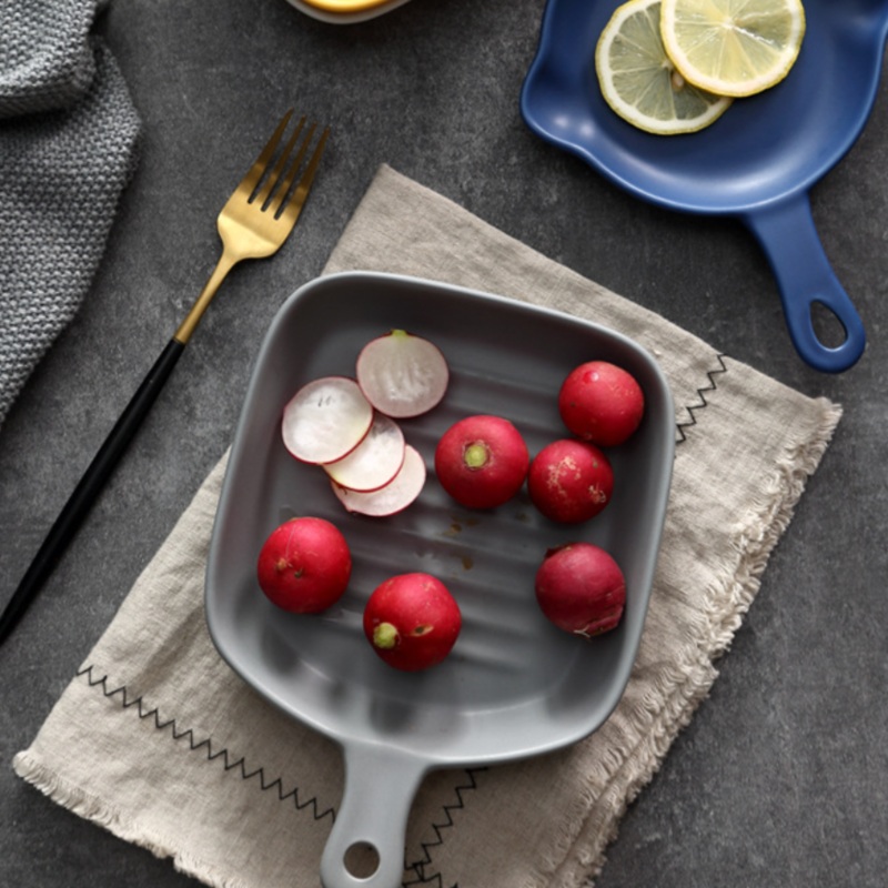 The ceramic grill plate may be used for baking and grilling and is microwave, oven, and dishwasher safe. The grill plate is available in a grey hue which will match any design scheme. The baking plate may also be used as a snack plate to serve food that has just come out of the oven. The plates are a must-have for a dinner table with a splash of color.