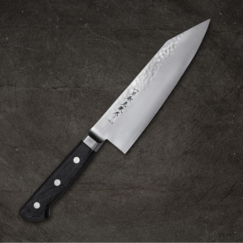 Ittosai Kotetsu knives made from VG5 steel are renowned for their superior edge retention compared to regular stainless steel while being easier to sharpen than VG10. The fine hammered pattern near the spine not only adds a beautiful aesthetic but also provides excellent food separation, making slicing smoother and more efficient. The handle is designed to fit comfortably in the hand, ensuring precise and safe cutting performance.