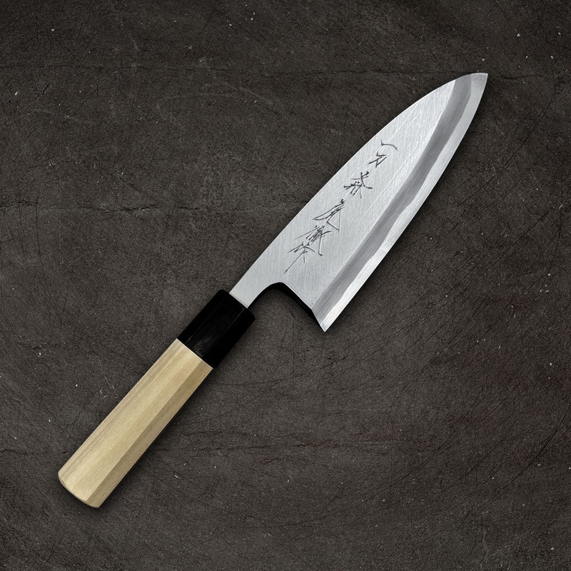 This Ittosai Kotetsu knife is made from White 2 steel and is a single-beveled knife. This steel type is celebrated for making high-quality blades more accessible without compromising the excellence of materials. The blade’s design facilitates streamlined sharpening, reducing production costs and offering a superior cutting experience. The octagonal magnolia handle is aesthetically pleasing and provides a comfortable grip, ensuring the knife feels balanced and easy to control during precise tasks. The well-polished spine and heel further enhance user comfort, making this knife a pleasure to use for prolonged periods.