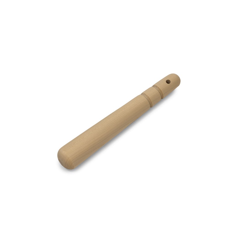 This wooden pestle gently presses ingredients into the grooves of a suribachi (mortar) to break them down. These pestles are made using higher janka hardness wood than the typical bleached softwood pestles found elsewhere. This higher hardness allows the p
