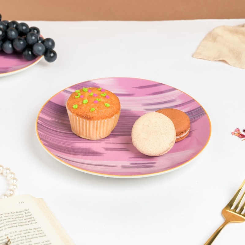 Nestip: Pair the Decal pink snack plate with the decal green snack plate for a vibrant evening party setup.