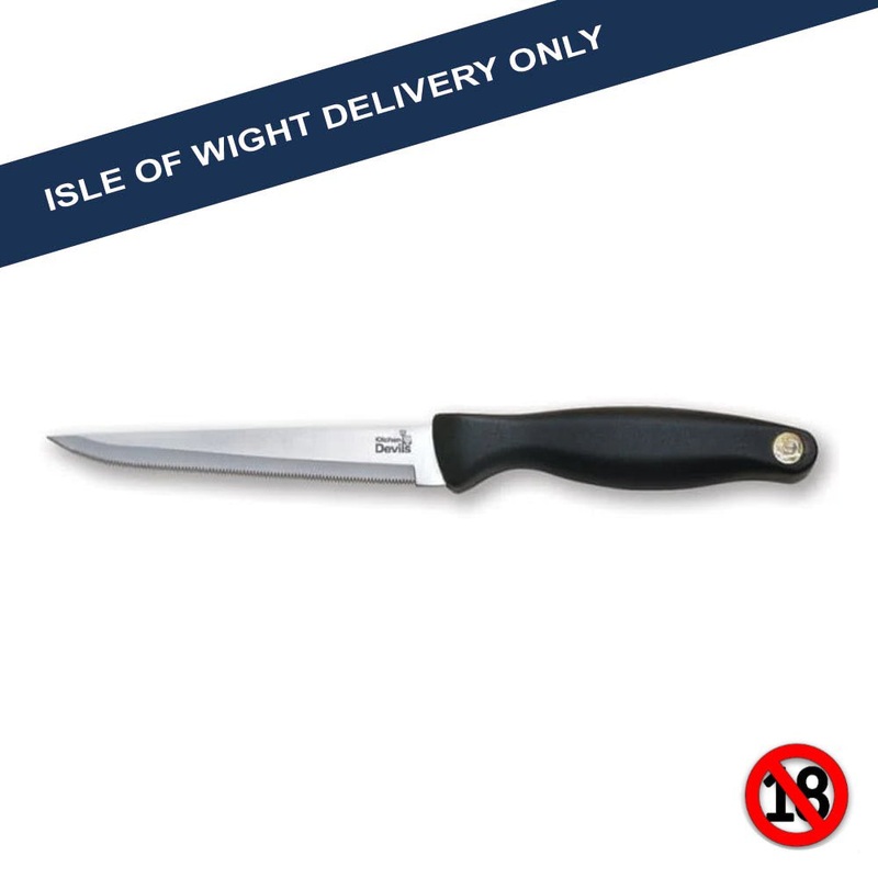 The Kitchen Devil’s Kitchen Knife features a precision-crafted slender, tapered blade that’s perfect for everyday food preparation. This versatile kitchen knife excels at slicing, dicing, and chopping salads, vegetables, fruits, and meats. The ergonomically designed handle provides superior grip and comfort during extended use, making meal preparation effortless. Constructed from high-quality stainless steel, this durable knife comes with a 25-year manufacturer’s guarantee and is completely dishwasher safe for easy cleaning.