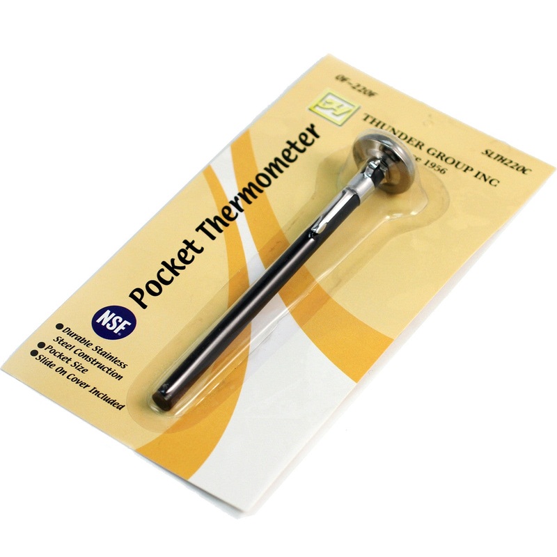 A standard instant-read pocket thermometer that measures from 0 to 220 degrees Fahrenheit.