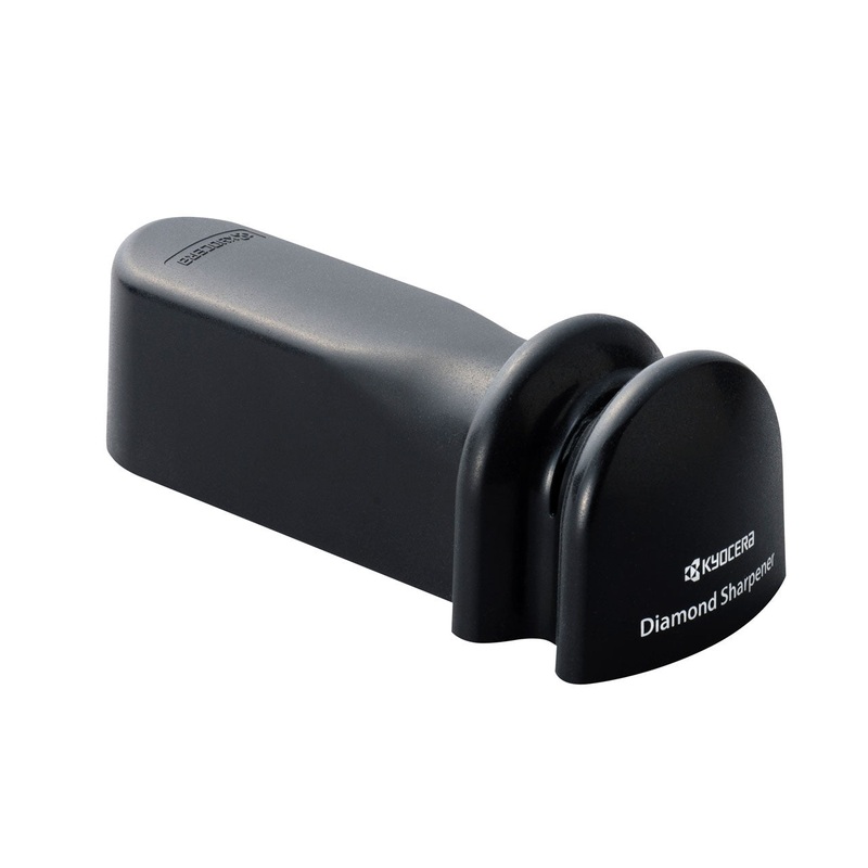 A super-efficient easy to use knife sharpener featuring a durable diamond wheel that will refresh the sharpness of steel knives and Kyocera ceramic knives. The #1000 grit diamond wheel is the strength of the knife sharpener, providing excellent wear resistance and consistent results every time. This sharpener can be used on ceramic or metal knives.