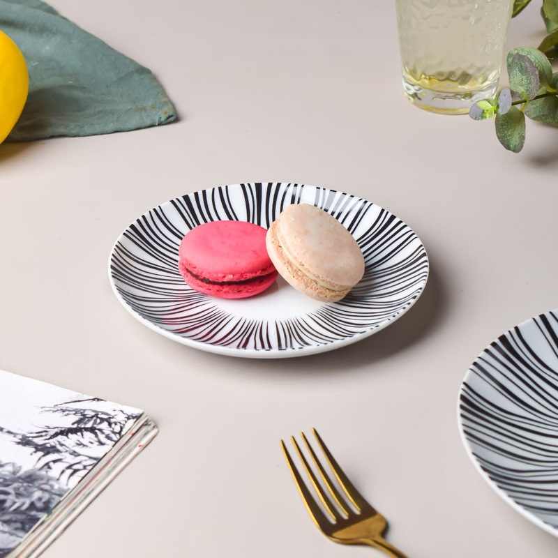 The small ceramic plate is the ideal dish to serve appetisers and desserts during the main course meal. Featuring artistic patterns of monochromatic hues, the plate makes for a modern and unique addition to the table. The small plate with its sturdy cerami