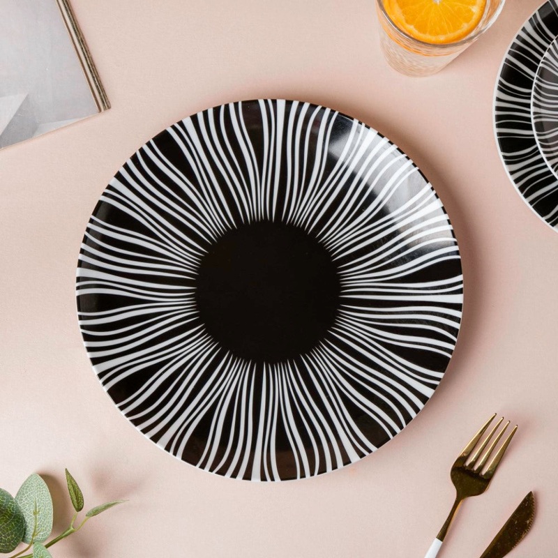 The exquisite ceramic dinner plate is sure to be the cornerstone of any dinner or lunch party. The graceful wavy patterns that surround the surface of the plate, multifold the beauty of the ceramic plate. Serve dinner or lunch delicacies on the ceramic plate and impress guests with your unique table styling skills.