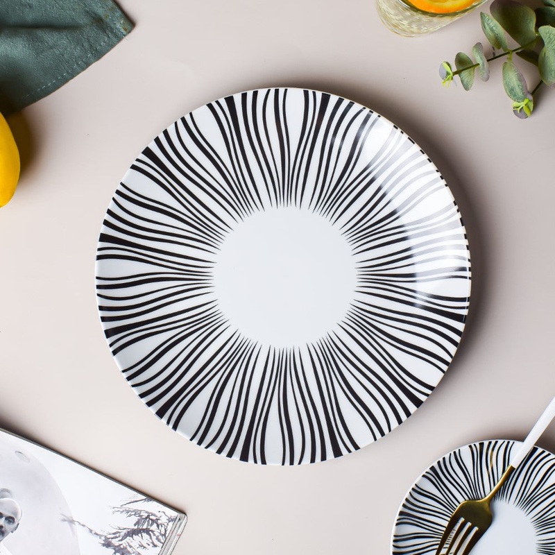 The stunning design of the ceramic plate will draw one in with its monochromatic colours and abstract patterns. The ceramic dinner plate exudes an air of excellence and elevates the dining experience. Featuring a gleaming sheen surface, the ceramic plate makes every dining table arrangement look wonderful.