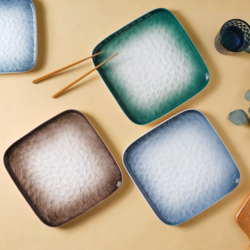 The ceramic marble square platter is available in three variant colors brown, blue, and green, that can be utilized to serve cakes, bites, sweets, and much more. It can likewise be utilized as a pizza, pasta, or kebab serving platter. The textured surface of the platter gives the platters a luxe look, whether the platters are used individually, in different color pairs, or paired with complementary sizes from the collection. To enhance the beauty of the table layout, pair the textured serving platter with minimalist crockery.