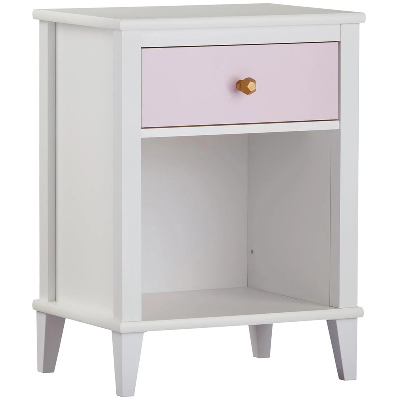 Little Seeds Monarch Hill Poppy Nightstands, White/PinkHave everything you need for bedtime in one place with the Little Seeds Monarch Hill Poppy Nightstand. Made of laminated particle board, the classic chassis is accented by a front drawer front with dif