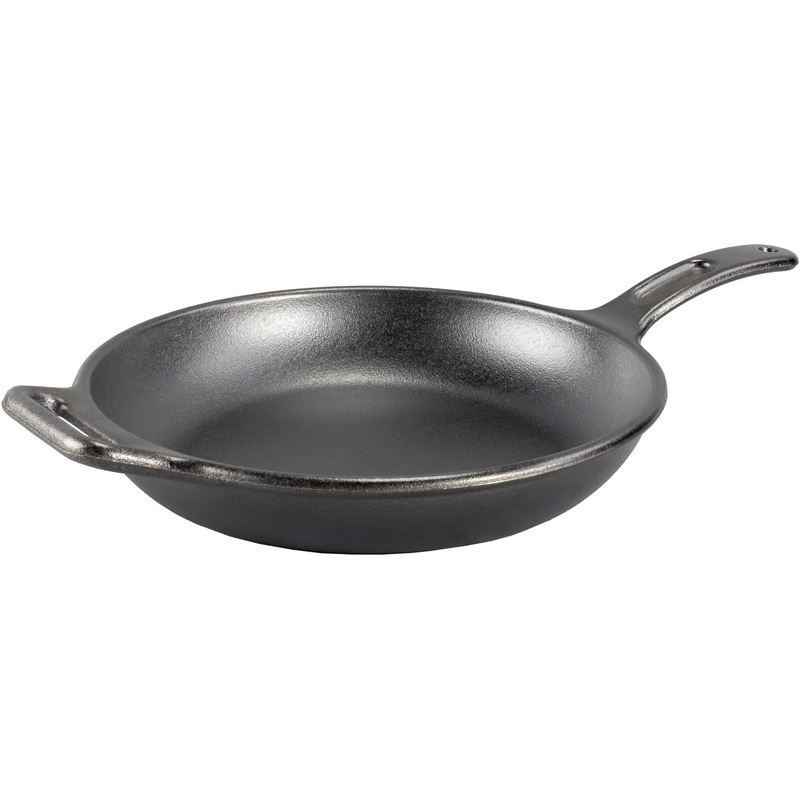 - 12 INCH CAST IRON SKILLET: Seasoned and ready to use, this generously-sized cast iron skillet features modern handles and sloped sidewalls for flipping, sizzling, sauteing, and stirring.