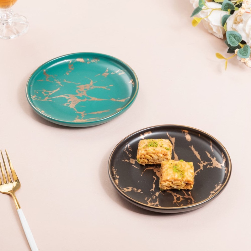 The marble design plate can adorn any table and enhance its appeal. The ceramic plate can be used during parties or festive occasions to add grandeur to the dining table. The stunning dessert plate is a must-have asset to add some elegance to the dining table. The side plate comes in interesting color options.