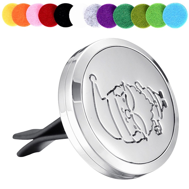 Stainless Steel Jewelry: More and morepeople choose Stainless Steel jewelry, You will find it’s not tarnish andoxidize, What s more important, They are all hypoallergenic. For both women andmen, It s a good accessory choice. Stainless steel Jewelry use very strong metal, it does not oxidize and will bevery durable, It s high resistance to rust, corrosion and tarnishing, It isable to endure lots of times wear and even a lot of sweat.?Package?: Packing includes: 1 lockets 12 different felt pads. one miniature funnel sturdy steel pin, exquisite box The best choice to keep good memories.Please feel free to contact us with any quality questions, we will definitely help you. ?Gift?: A convenient for your car, small space, nice look. It is a great gift for yourself, your family or your friends. ?Usage?: Apply a few drops of your essential oil to one felt pad, put it inside the 30mm car locket. Easily to clip on car air-conditioning vent, place it on office desk, use it at home or any other proper places that you prefer. ?Efficacy?:Relieve your stress and keep alert when you drive. Aroma around you, bring you good mood. Minimize some smell you don’t like. Use your favorate essential oil to enjoy your daily life, your trip. ? material?: Premium 316L stainless steel material, smooth surface, strong magnetic closure, long lifetime. Come with 12 felt pads, different colors, thickened pads, absorb essential oil easily.