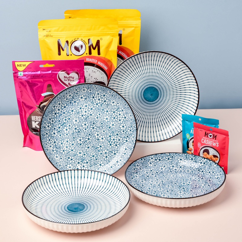 Agift hamper curated to be the perfect gift for your loved ones or yourself. Reminisce over fond memories or simply celebrateoccasions by serving festive snacks on the ceramic snack plates. The ceramic plates feature stunning patterns in soothing blue on a stark white surface. The snack plates or appetiser plates with raised rims allow for easier serving and eating. Serve salads, puddings, custards, or snacks like pretzels, crackers, potato chips, dried fruits, nachos, and several other delicious treats on the floral and geometric design plates.