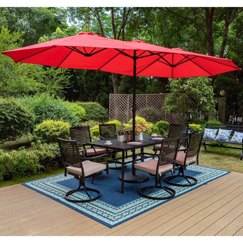 - Large Patio UmbrellaThis 15ft patio umbrella features a double-sided design, which gives you maximum shelter that brings you double shades for your outside enjoyment. Additionally, this patio umbrella with large shade is great for garden, backyard, poolside and beach.