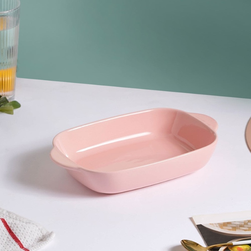 The high-quality ceramic used to craft the rectangular baking dish is resistant to the intense heat of the oven. The dish’s large surface area makes it possible to bake a larger volume of food. In the pink porcelain dish, bake steaks, lasagna, or cheese pasta. Cookies, cupcakes, and pies can all be baked and served on the ceramic baking dish.