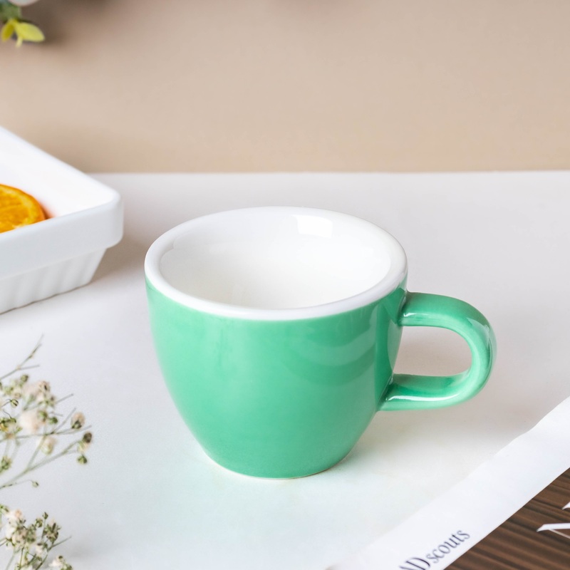 Incorporate a unique sleek cup into your kitchen. Enjoy a cup of steaming coffee or tea in the morning with the modern designed cup. Tea, coffee, espresso, iced teas, and matcha can be served in this classic ceramicware. This teacup is also ideal as a present for any formal or informal occasion. The green coloured cup has been composed of high-quality ceramic and is fully lead-free, and non-toxic.