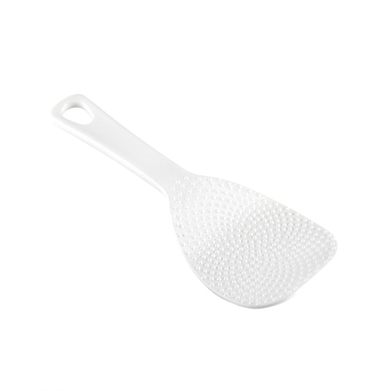 This textured non-stick spatula (or shamoji) makes scooping and serving rice much easier.SpecificationsMaterial: Plastic, SiliconeDimensions: 7.5" L x 2.75" WThis product can withstand temperatures from -20C (-4F) up to 120C (248F)Made in JapanWash with a
