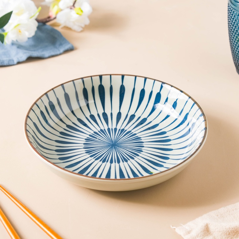Evoking memories of a very traditional yet elegant design pattern, the collection of blue and white plates shows our love for pomp and splendor that help add an aristocratic touch to any serving. The design on the snack plate is handcrafted using a modification of the decorative paisley design instilling a modern touch to it. The slight irregularities that each piece of this unique crockery features is due to the natural outcome of human involvement in the process.