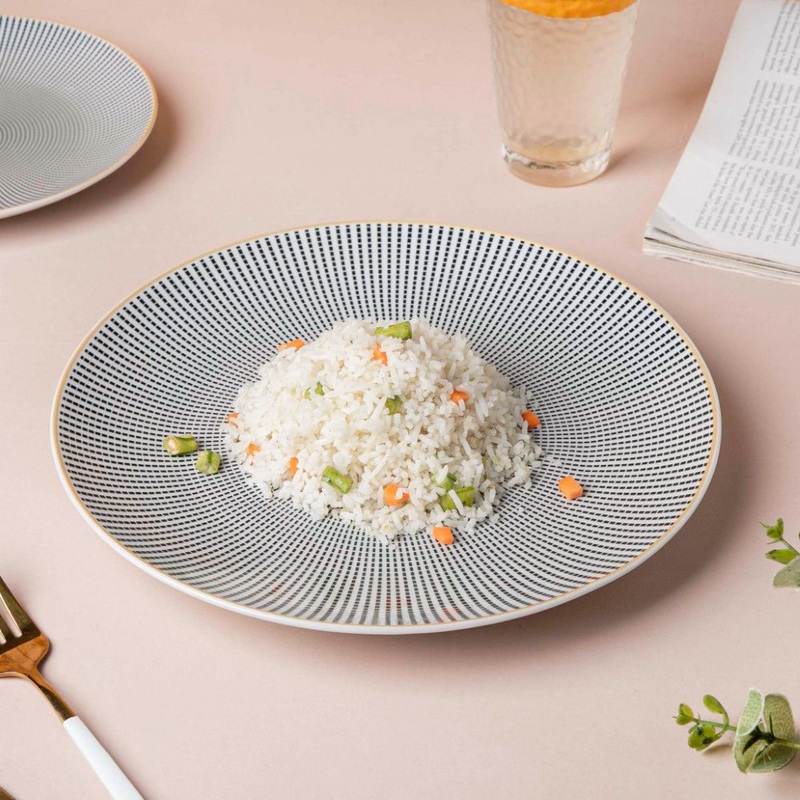 The ceramic dinner plate features a design that catches the eye as it’s truly hypnotic. A uniquely designed pattern that’s an amalgamation of spiral and linear patterns, the ceramic dinner plate boasts a one-of-a-kind form. The impressive dinner plate has been constructed of high-quality ceramic and is perfect to grace dinner parties.