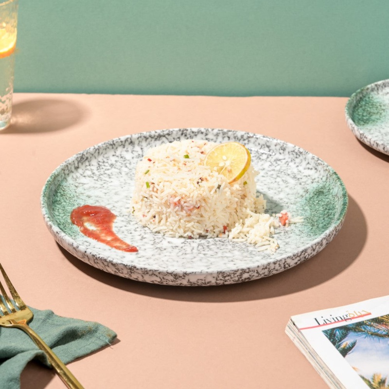 A canopy of white stars and splotches of soft green compose the majority of the milky white ceramic snack plate’s luminous night sky. Only the cuisine itself is awaiting plating. Bring the 10-inch handcrafted clay dinner plate home and enjoy a meal in leisure. Dumplings, wraps, saucy spaghetti, and empanadas can all be served on the durable and wonderful glazed pottery dinner dish.