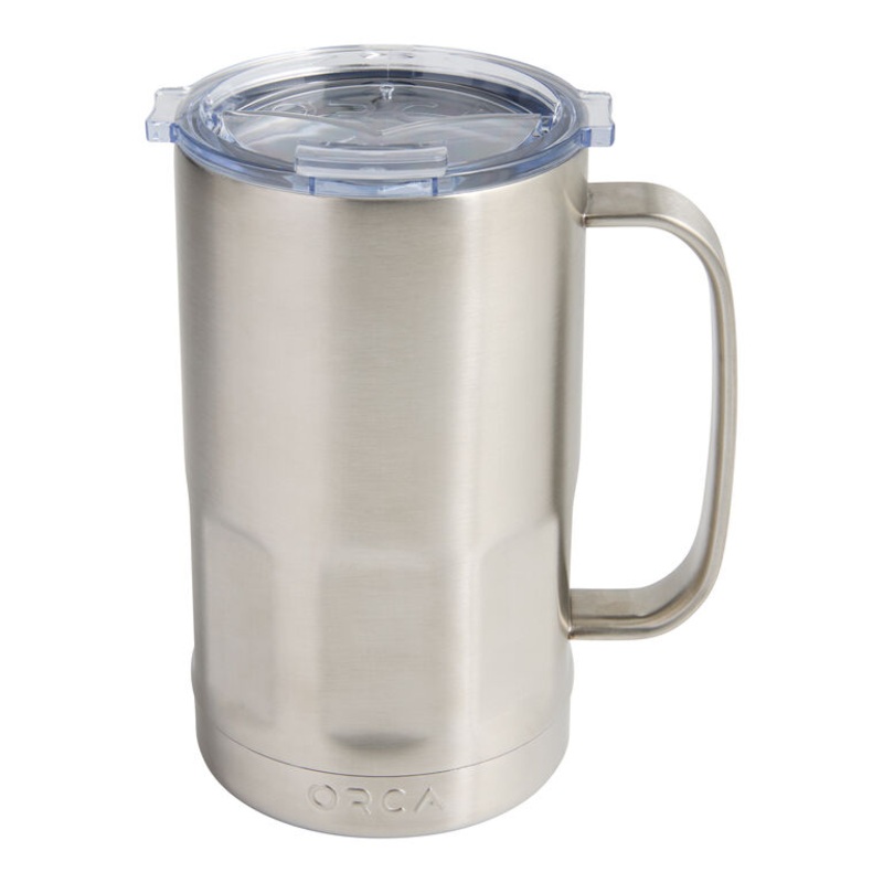 A perfect gift for anyone who loves to “prost” – that’s cheers, to you – this stainless-steel tumbler by Orca is designed in the shape of a classic beer stein. Large enough to fit two standard beers, it keeps your drinks cold with a double-walled construction that regulates temperature without leaving condensation on the outside. Complete with a sturdy handle and a flip-top, spill-proof lid, it’s a cool companion for hanging by the campfire or grilling up a BBQ feast.