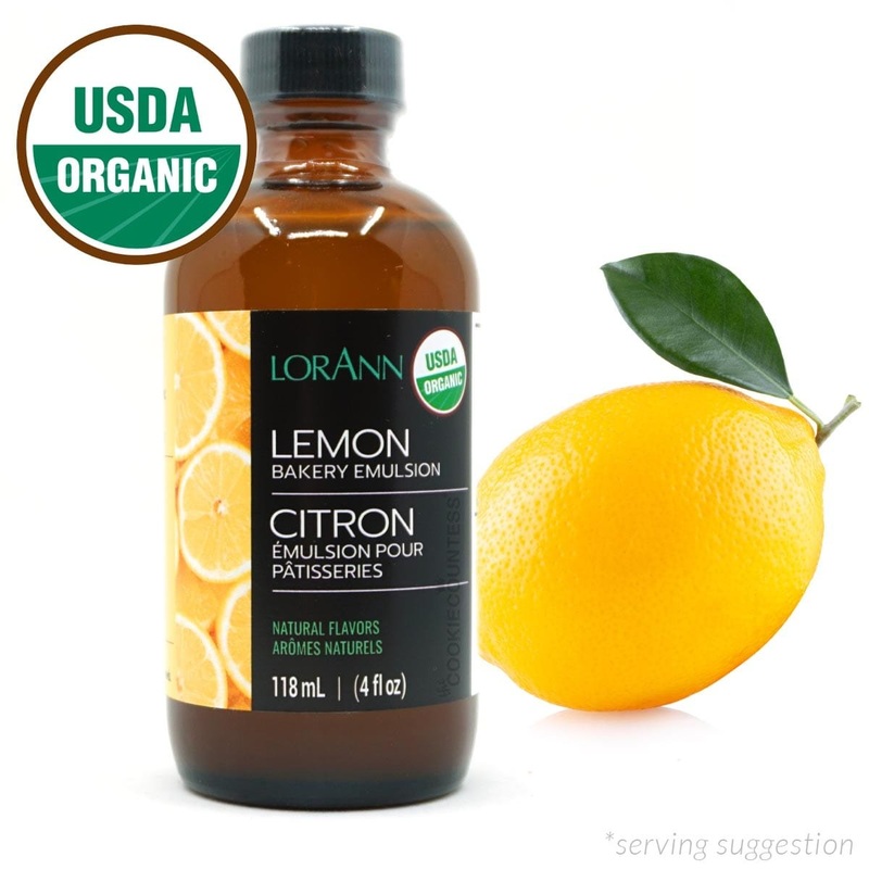 Bright, bold, citrus flavor and lemony aroma, likeLorann’s original Lemon Bakery Emulsion, NOW certified organic with clean ingredients and packaging. Delicious flavor for your cakes, cookies, frostings, fillings, and desserts. Each 4 oz. bottle is packaged in an Amber glass storage bottle for easy recycling that uses fewer resources, energy, and reduces emissions.