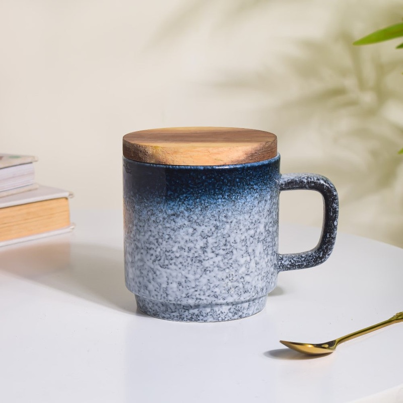 The chic handcrafted ceramic mug is simple to hold and drink with due to the ceramic mug's distinctively designed handle. The stoneware coffee mug comes with a wooden lid that keeps the beverage inside nice and fresh. The handmade ceramic mug, which combin