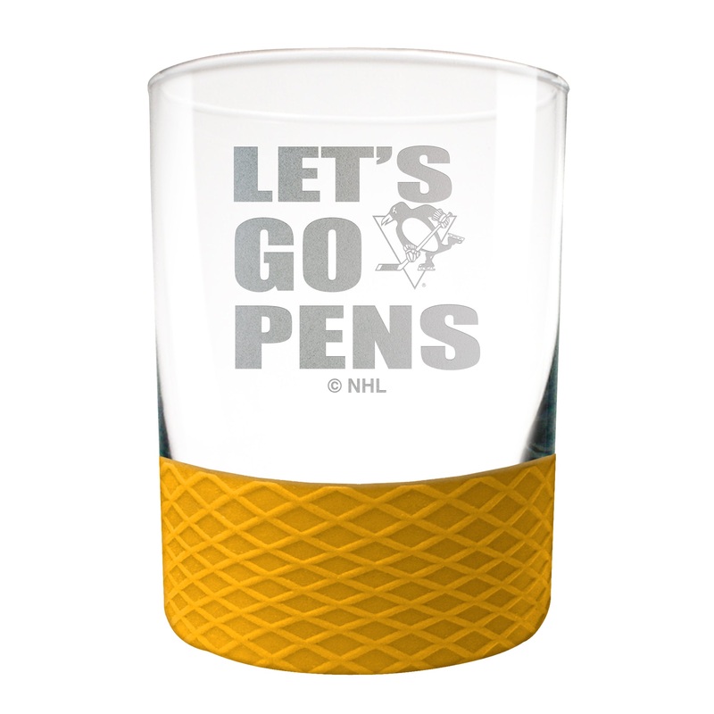 This 14 oz COMMISSIONER rocks glass is perfect for enjoying any beverage over ice. The glass is decorated with laser etched team graphics and team color coordinated silicone base