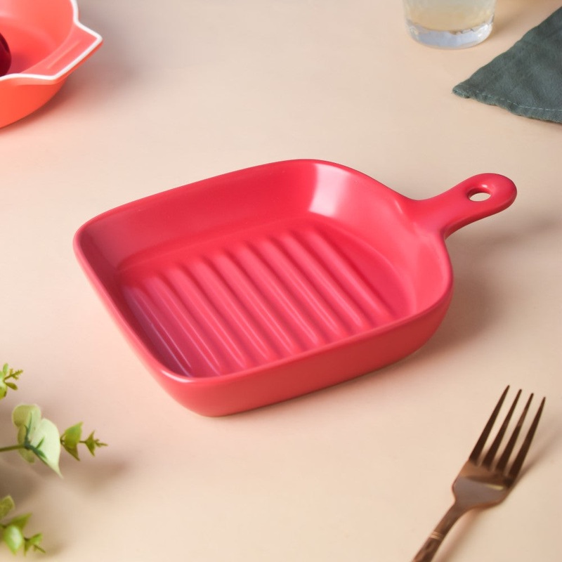 Grill lines are included on the dish with a raised rim and handle, allowing anybody to master all of their recipes. Use the platter to cook roasted chicken or a wonderful fish fillet on the grill. To serve with the grilled meat, toss some vegetables together. The pan may also be used for non-gas cooking, and salads or sandwiches can be served in it. The plate is designed to make cooking, cleaning, and storing the food as simple as possible for customers.