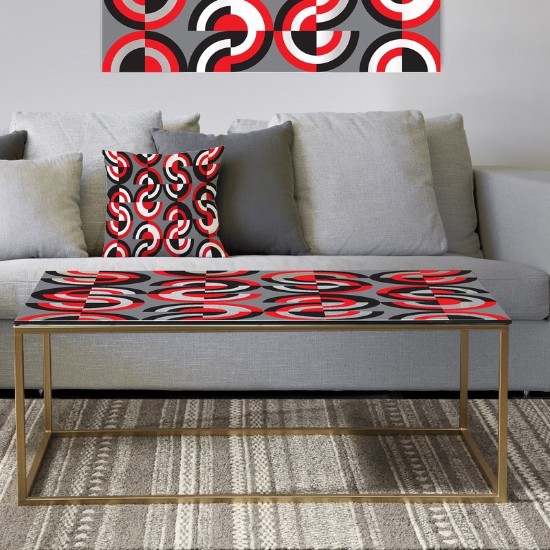 Refresh the look of your living room with Designart’s ‘Retro Circular Pattern Geometrical’ coffee table. The combination of vivid red, black, and white colors makes this table a worthy centerpiece. Glass-underside application of the high-density inks help the patterns remain brilliant and damage-free over time.