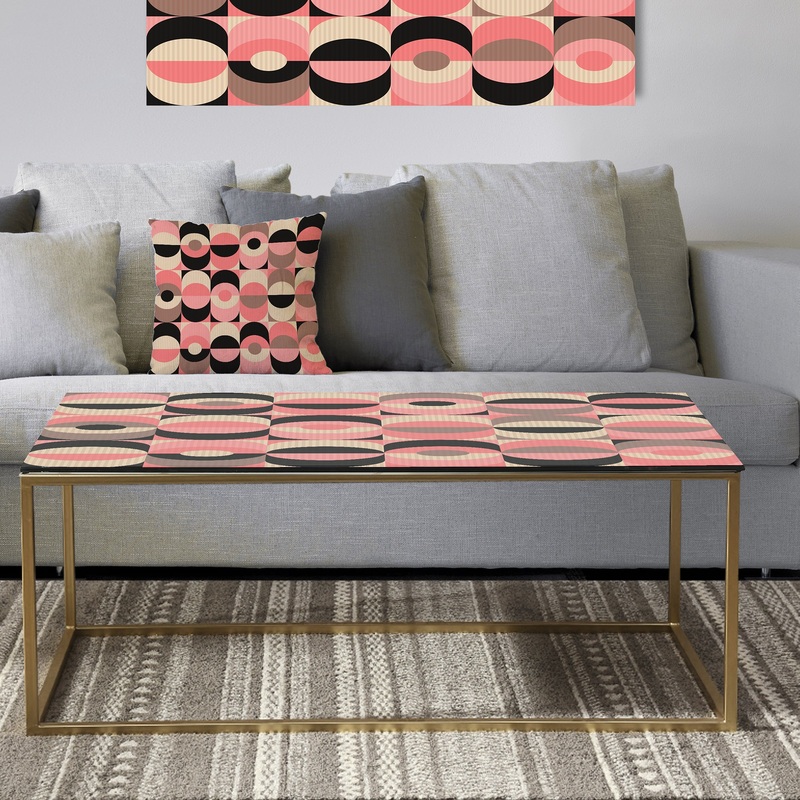 Lend color and pattern to your neutral-style living room with this Designart 'Retro Geometric Design XI' coffee table. Boasting pink, cream, and black hues for visual charm, this coffee table is printed using high-density inks for vibrancy. The table has a