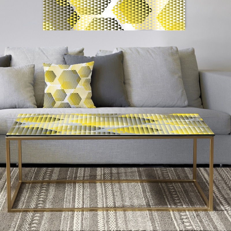 Invigorate your decor with this vividly colored coffee table from Designart. The intricate hexagonal pattern is printed on the underside of the clear glass top to keep the design safe from spills and stains, and it is made with high-density Italian inks to keep it looking bright and fresh. The sturdy metal base is durable and low-maintenance.
