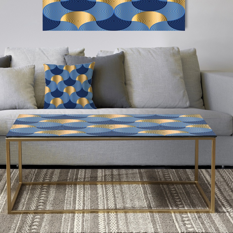 Jazz up a plain conversation seating arrangement with this coffee table from Designart. The retro-inspired wave print turns the table into a piece of art, and the shades of gold and blue give your room a glam update. The streamlined metal base provides space under the table for storage baskets or extra blankets.