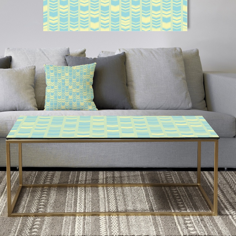 Accent your contemporary decor with this metal modern coffee table by Designart. Featuring an abstract, retro design printed below the glass, this table adds a fashionable pop of color to nearly any decor scheme. A goldtone, sled-style metal base provides stability and makes this table easy to move.