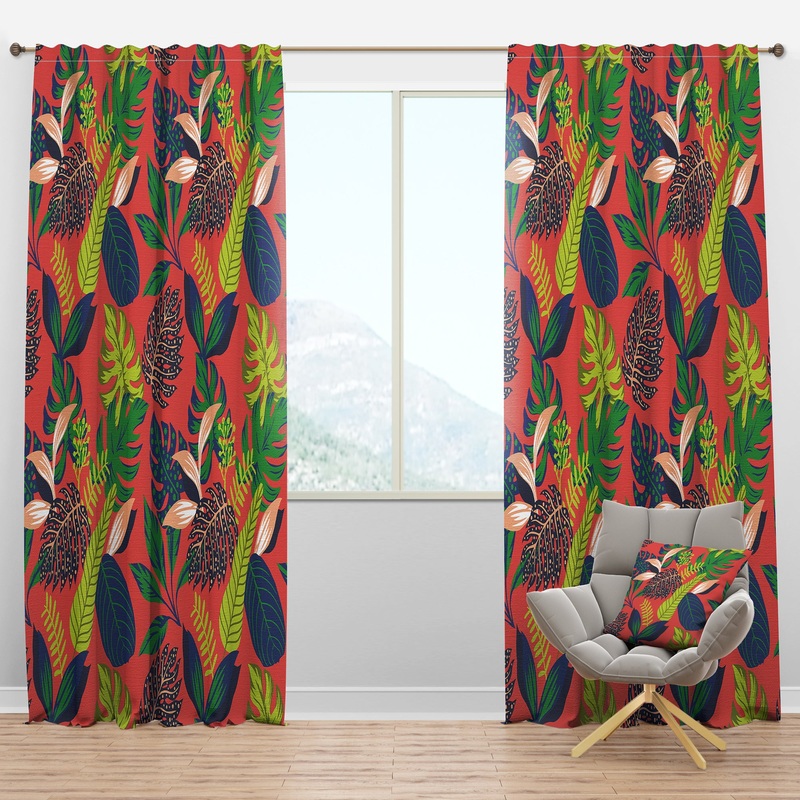 Have a design field day with this Designart ‘Retro Tropical Leaves I’ mid-century modern curtain panel. Featuring multiple colors for a welcoming vibe, this curtain panel is printed using fade-resistant inks for durable vibrancy. Fashioned from polyester for sturdy charm, this curtain is machine washable for easy cleaning.