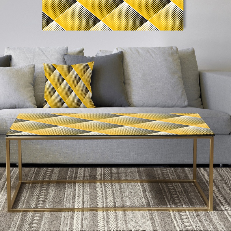 Bring vibrant color to the social hub of your home with this Designart ‘Rhombus Retro Geometric’ coffee table. Creating a spacious surface to perch books and decorative accents, this coffee table has geometric patterns printed underneath the glass top to protect the artwork from stains and scratches.